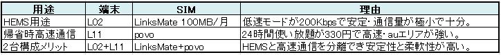 - AIによると、HEMS用には4G固定のL02の方が安定している、との事。